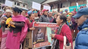 सिमकोट । बलात्कारपछि हत्या भएकी १६ वर्षीया इनिसा विकको न्यायका लागि आइतबार हुम्लाका महिलाले सदरमुकाम सिमकोटमा विरोध प्रदर्शन गर्दै बजारपरिक्रकमाका गर्दै सडकमा उत्रिएका छन् ।