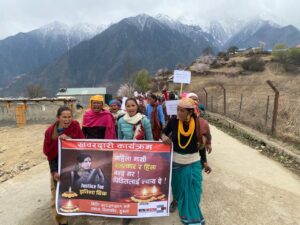 जिल्लामा लामो समयदेखि महिला हिंसा, हिंसा, र पिडितका पक्षमा आवाज उठान गर्दै आएको नेपाल अष्ट्रिया संस्थाको अगुवाइमा सिमकोट बजारमा भएको प्रदर्शनमा सहभागीहरूले ‘महिला माथि बलत्कारी र हिंसा बन्द गर’, ‘इनिसा विकलाई न्याय दे’, ‘बलात्कारीलाई फाँसी दे’, ‘जात व्यवस्था मुर्दावाद’, ‘बलात्कारीलाई कारबाही गर’, ‘पितृसत्ता मुर्दावाद’ जस्ता नारा लेखिएका प्लेकार्ड बोकेका थिए ।